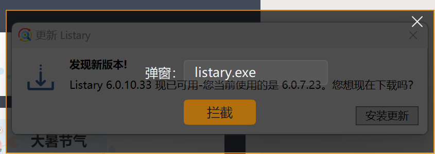 框选Listary的更新窗口,最后点“拦截”即可。